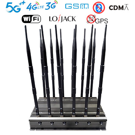 This new powerful cellphone WIFI GPS 5G signal jammer is designed with 12 antennas which bring us a strong jamming ability. And it can not only cut off all 3G 4G 5G mobile phone signals, but also block WiFi GPS LOJACK signals. And with Adjustable 79 watts high power, the jamming radius of this device can be up to 80 meters at most depending on the signal strength in the detailed place.Built-in 5 Cooling Fans non-stop working.
